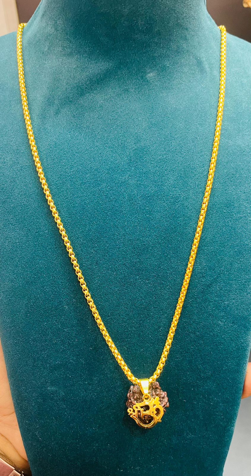 Religious Traditional Lord om Special Pendant With Rudhraksh Mala lord shiva lockets for men and Boys Gold-plated Brass Pendant