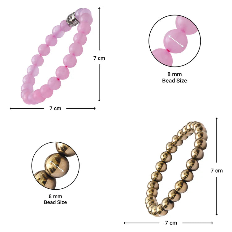The Money & Love Combo pairs Rose Quartz for love and healing with Money Magnet bracelet for attracting money and success. Wear them to balance your heart and wealth. Bring love and prosperity into your life with this special combo.